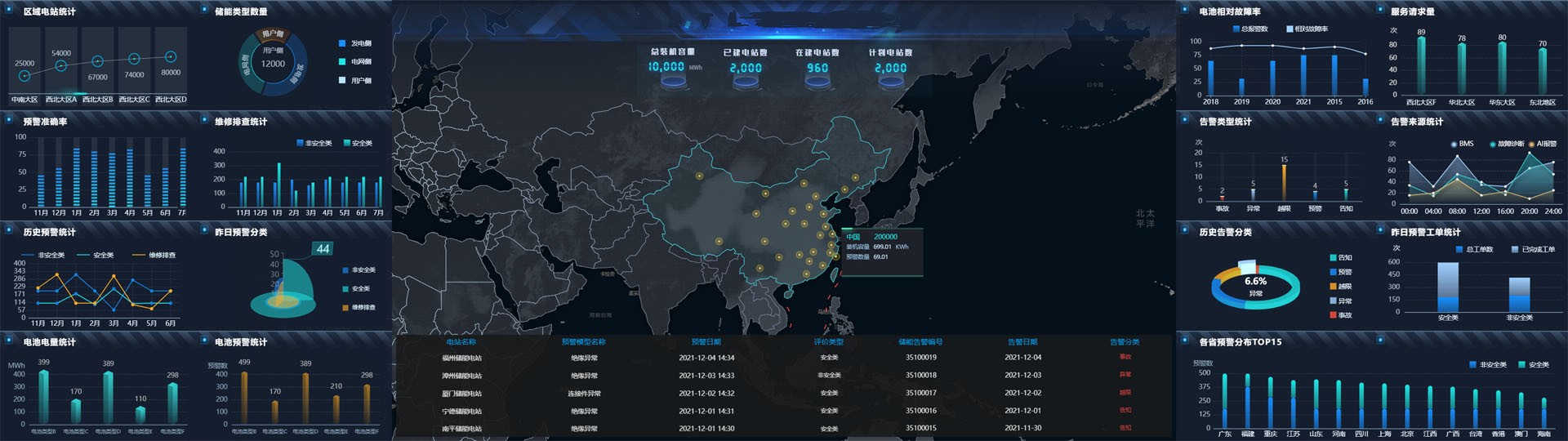 基于“云-边-端”协同架构的储能大数据平台,通过对储能系统海量数据的接入和有效处理,达到对储能电站运行状态的全面监视管理;基于算法预警和故障自诊断,满足储能站协同控制、数据安全、场站安全和可靠运行的需求;远程OTA升级、动态充放电策略云下发、数字化工单、智能APP,打造全面覆盖的数字化一站式智慧运维管理。